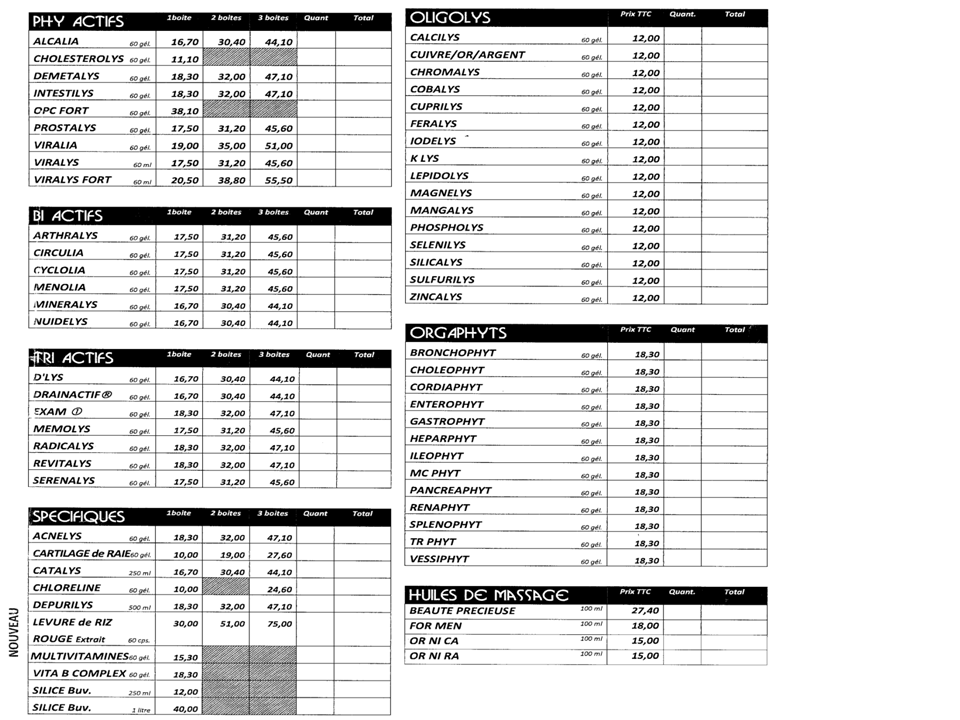 |  TARIF EQUILIBRE 2 | Toujours dans un souci de perfectionnement des soins apportés à l'Institut, des complexes relaxants ,energisants sont proposés à la vente, mis au point par un laboratoire certifié et reconnu: